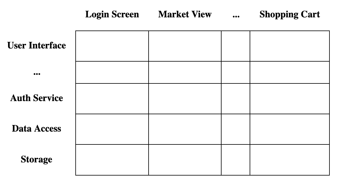 Engineers, on the other hand, often have no real sense of who their users are or what features matter. It’s the nature of the job: Most engineers are not in client-facing roles, and many have never even met an actual user of their product. They can, however, envision the architectural layers needed to support features in the abstract. For example (using deliberately vague labels as strawmen):